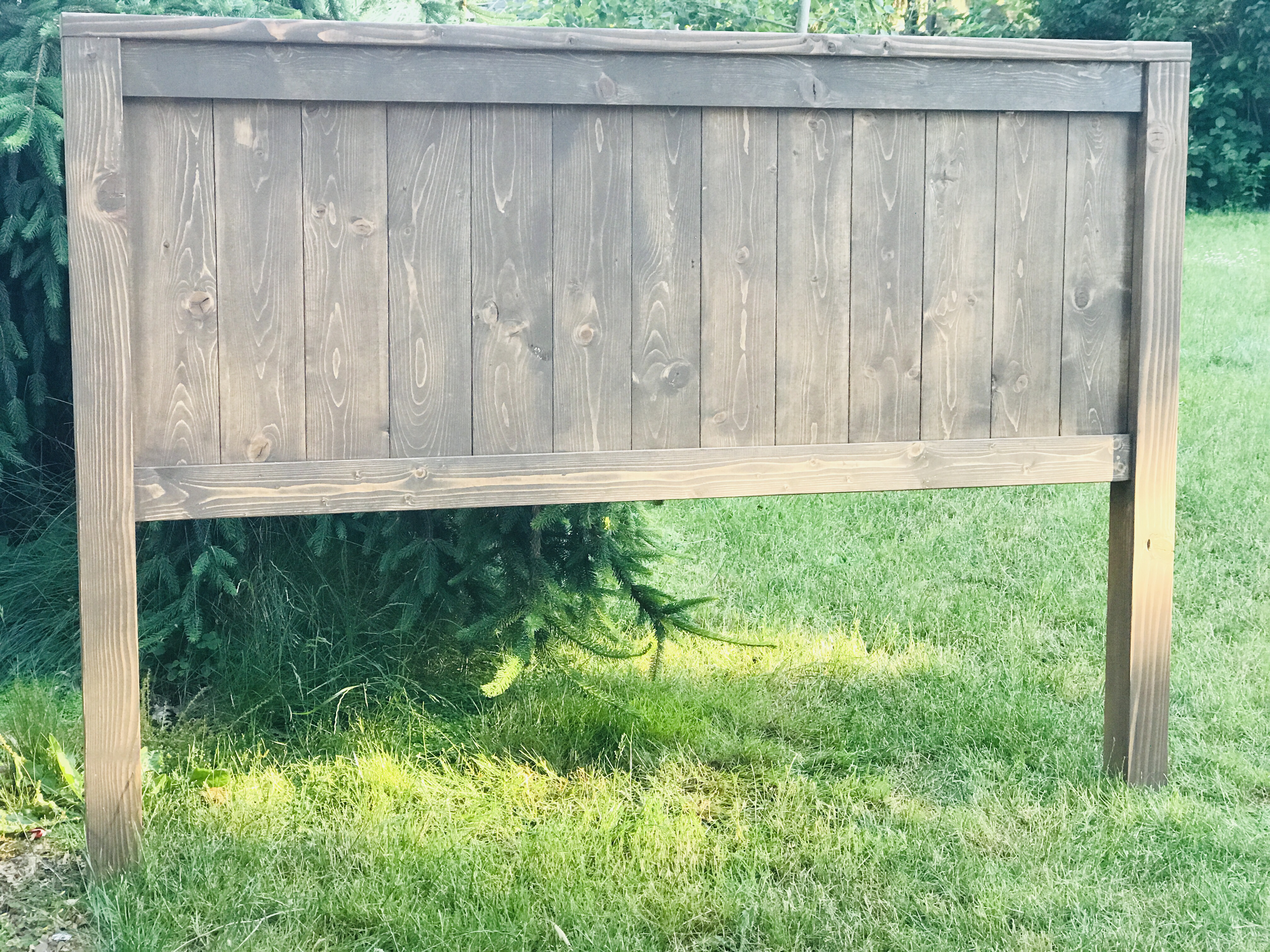 King Size Farmhouse Headboard. Two different style techniques pictured above. All stained and distressed version, but done lightly.