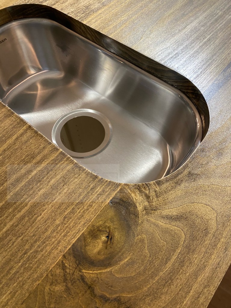 The Modern undermount sink was picked by our client. Its overall basin dimensions are 7.13″ W x 15.75″L x 5.5″ D. When we do custom builds like this, it’s important for us to have the sink on hand. We want to know that it will for sure fit. The sink was also sealed with waterproof caulking. We did pre-drill the hole for the faucet.