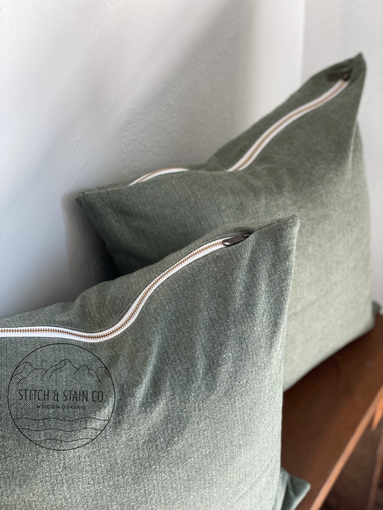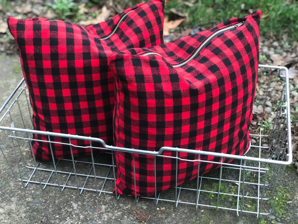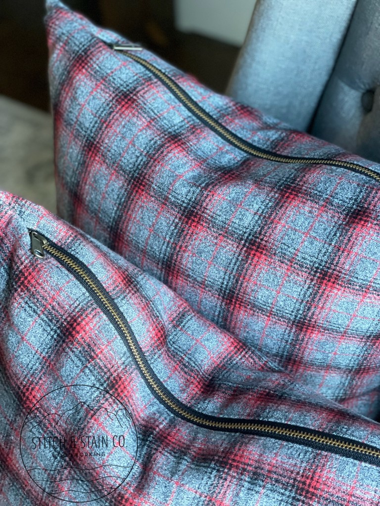 My pillows are made with medium weight flannel, not the thin stuff. Before I even cut the material I pre-wash my fabric. They are made to fit a 20×20 pillow insert. My favorite is the IKEA down-filled pillow. As I said, they are washable so it was a important to make the cover removable. As a mom of 2 with 3 dogs and the occasional spill they need to be washable. Machine was cold, inside out and you can either dry on low or air dry. Because Im always in a hurry, I typically put them in on low heat. 🙂