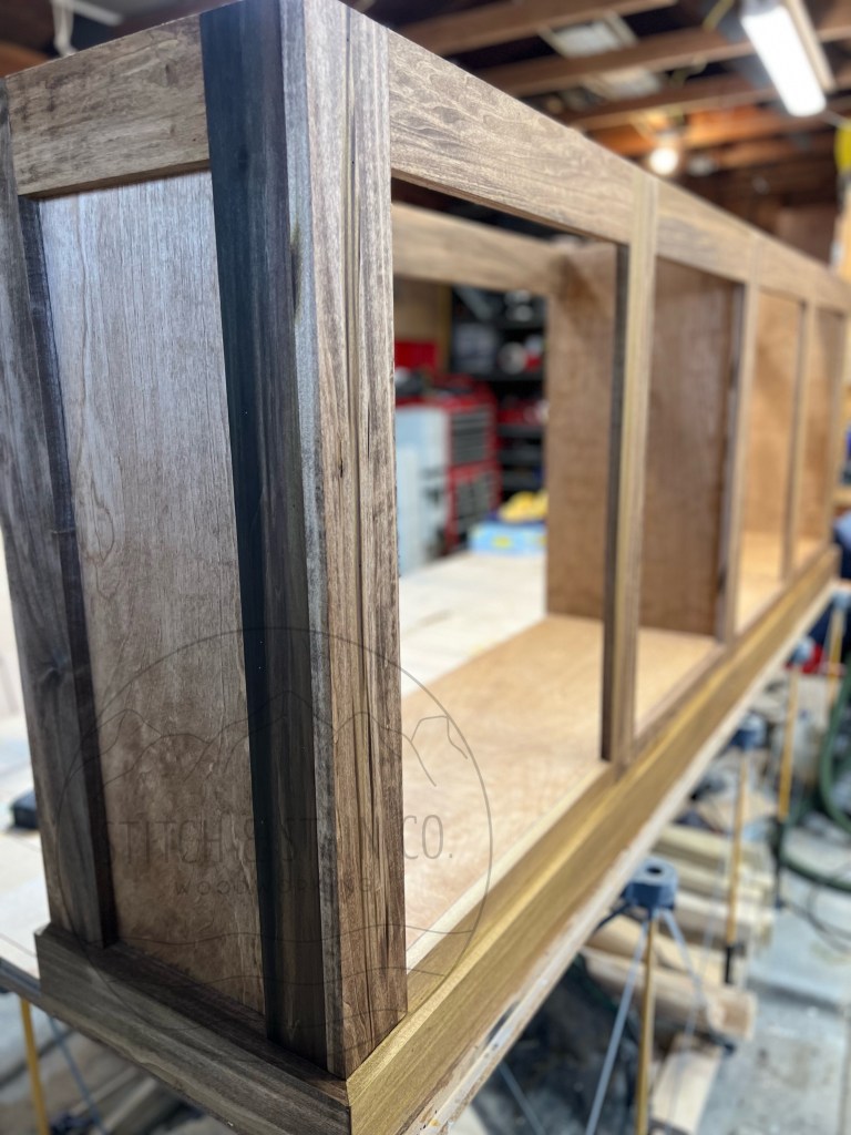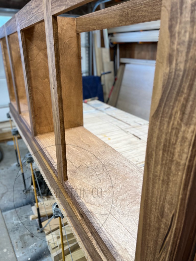 Wherever it’s at, it’s holding all the things you may or may not want people to see. The size can be modified to fit the area you’d like to put it. You can even do glass instead of wood even. It can be painted or stained and three of them were stained, which on Poplar and birch looks good. The inside of wood is birch plywood and Poplar hardwood on the outside.