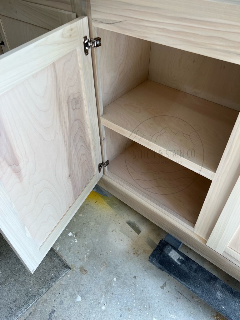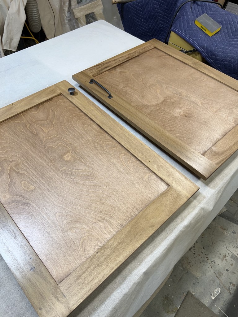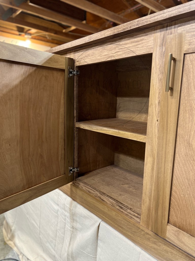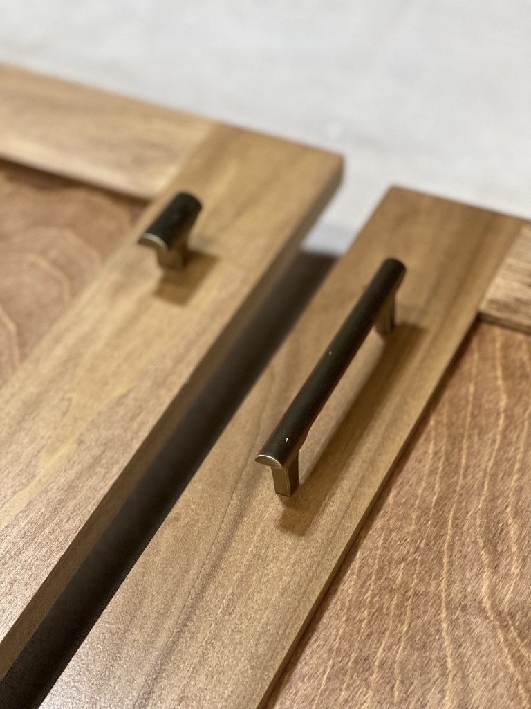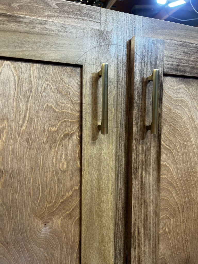 The doors have soft close hinges and also made of Poplar and birch. Hardware options are available as well. We do have just a standard hardware we use if anyone just wants what we have, but if there’s a color or style you’d like to use we can do that. Bronze and brass were starting to get popular in 2022, but it’s usually black that most choose.