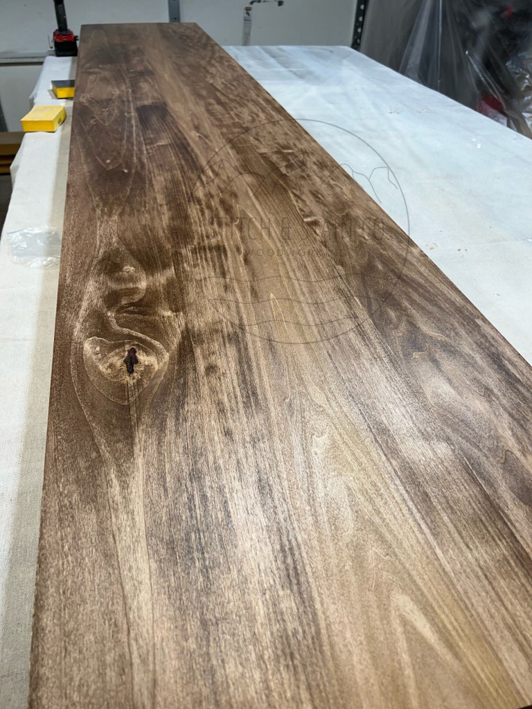 The second one is Special Walnut by Minwax. Probably the 2nd most popular stain color we use on builds. It’s a lighter brown, I think thats why it’s a favorite. This last one (bottom pic) is Dark Walnut, by Minwax. The most popular color we use in the shop. It’s not the darkest brown we have, but it’s close. I have to buy this color by the gallon, thats how popular it is.