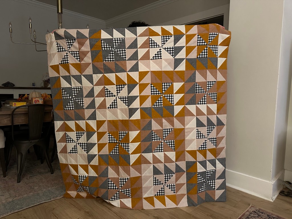Here it is all done. I had fun making the quilt. So much fun that I ordered another quilt kit from PeonyPedalQuilts. The next thing I plan on doing is making a Quilt Ladder. They are little wider than the blanket ladders I make, so I think that will be my next build after Phase 2 of the Kitchen remodel. I think some quilted pillow covers may be up for sale soon as well.