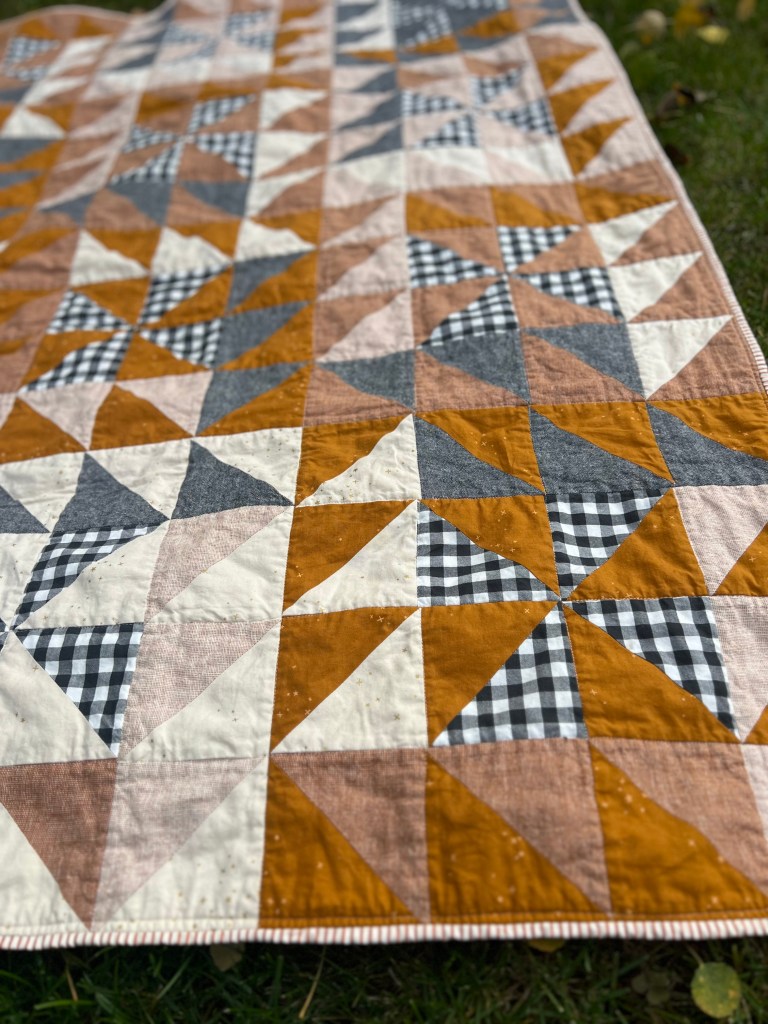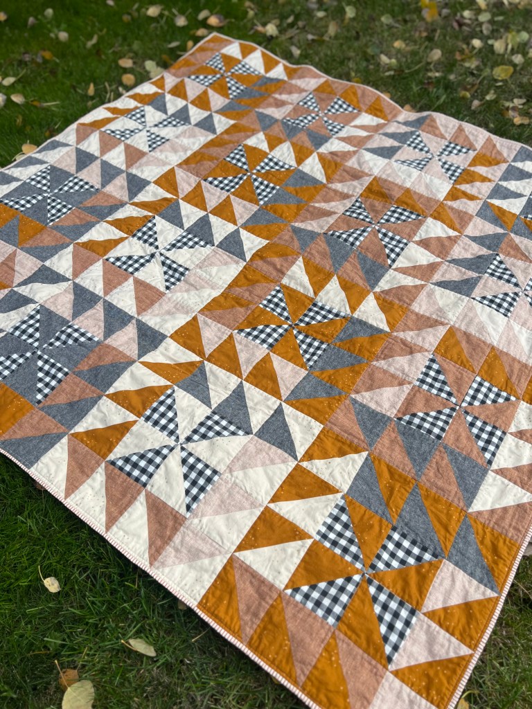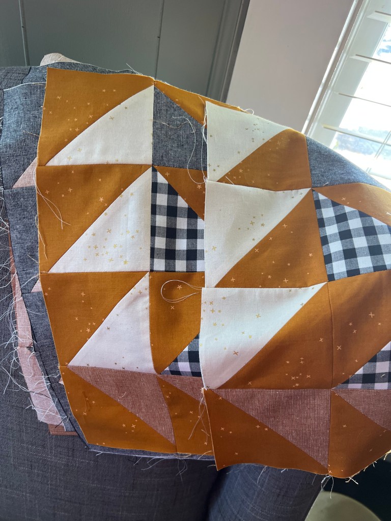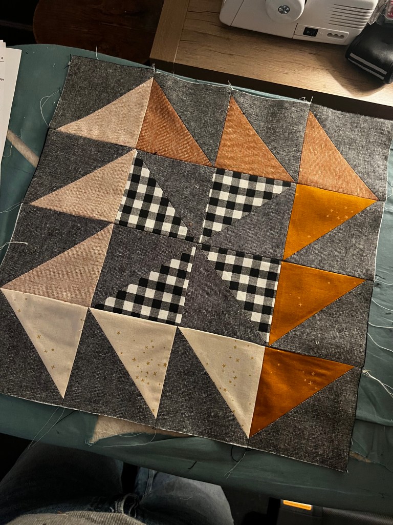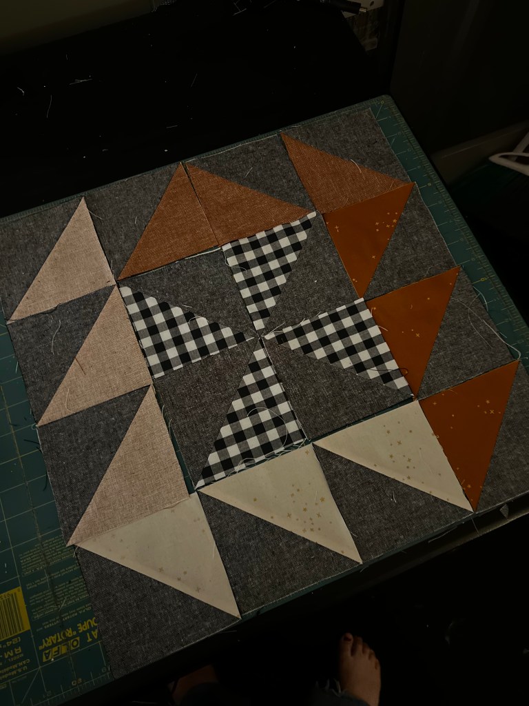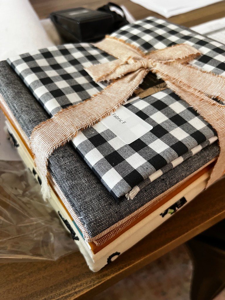 I don’t know how I found it, maybe it was part of the algorithm on the socials, but quilting videos popped up. Then that led to finding all kinds of quilting pages. I found out that some sell Quilt Kits. I didn’t know it was a thing, but I was all for it because they had kits that had modern prints and less old lady vibe. It also took the stress out of finding fabrics that go together. There was also good quality fabric brands that I’ve used before. I went with @peonypedalquilts. This is what the quilt kit looked like went I pulled it out of packaging. The fabric is labeled to go with the pattern. You just have to cut the pieces. The quilt kit is for a Throw size.