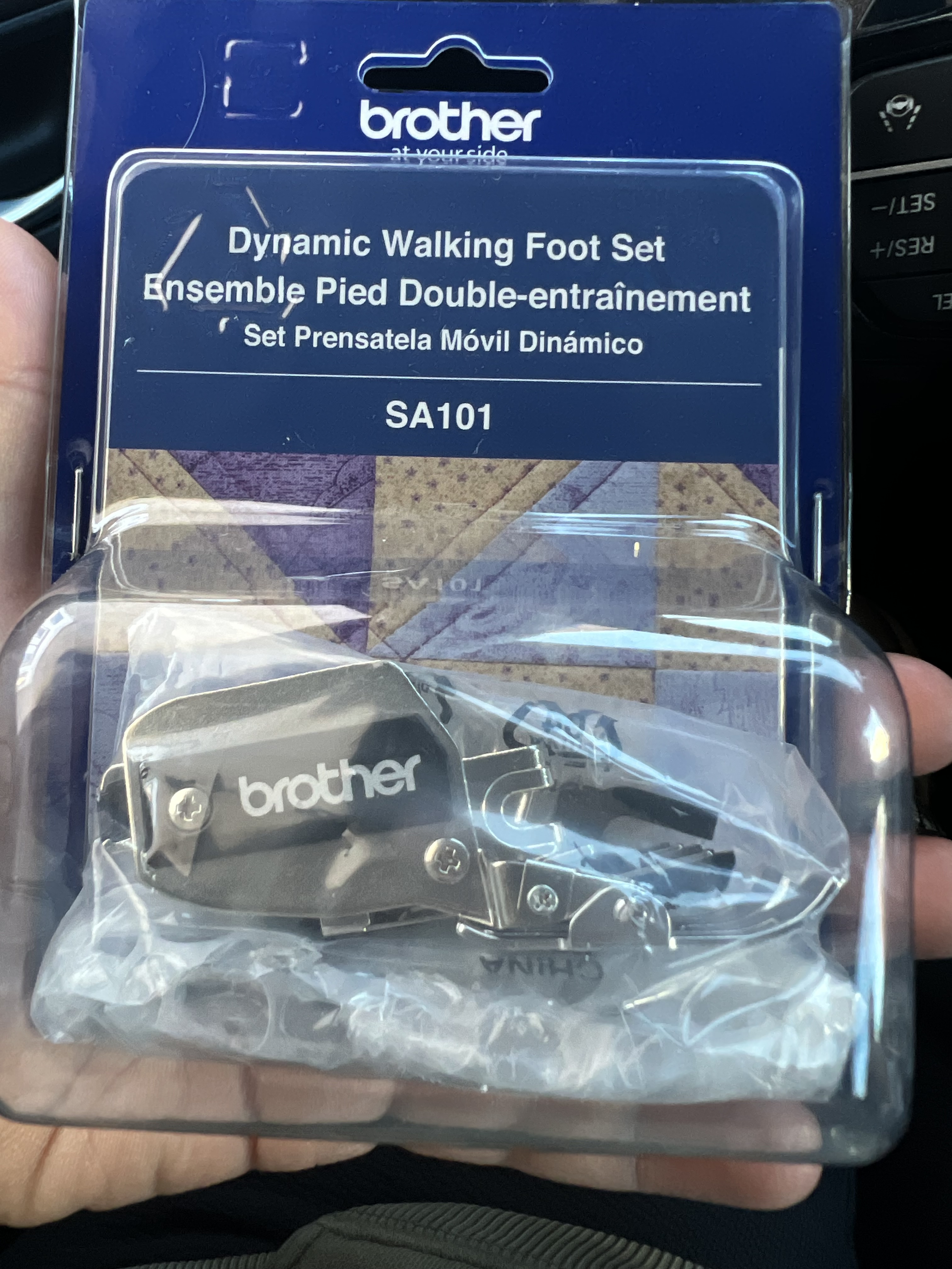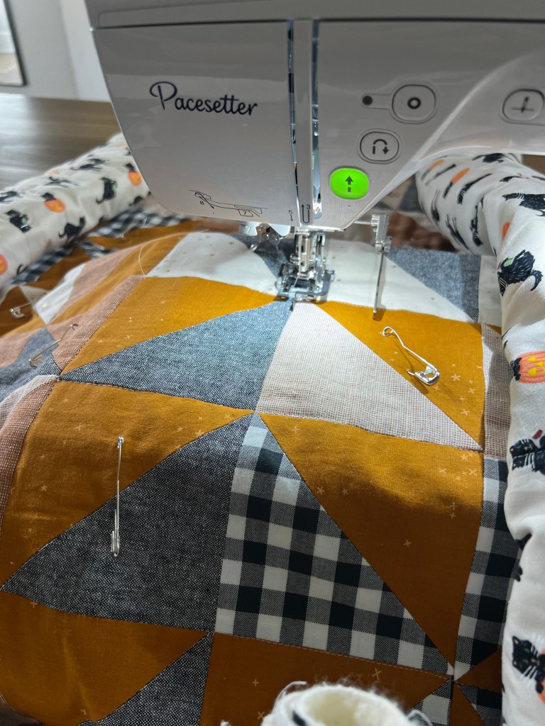 I went in there enough where the ladies that worked there recognized me, but I’m totally spacing their names. I finally got to the point where I had to sew all these layers together so she gave me some tips and then tells me to use a walking foot. A what?! I learned about a walking foot, stitch in the ditch and then the next thing you know I’m walking out with a new sewing machine. Granted I knew I needed one, but Im just too cheap when it comes to buying things like this. When I make the pillows we sell, my sewing machine barely handled it, so It was something I needed to purchase for the business a long time ago. I also bought the walking foot and was invited to come in for Open Sew Days. Woo Woo!!