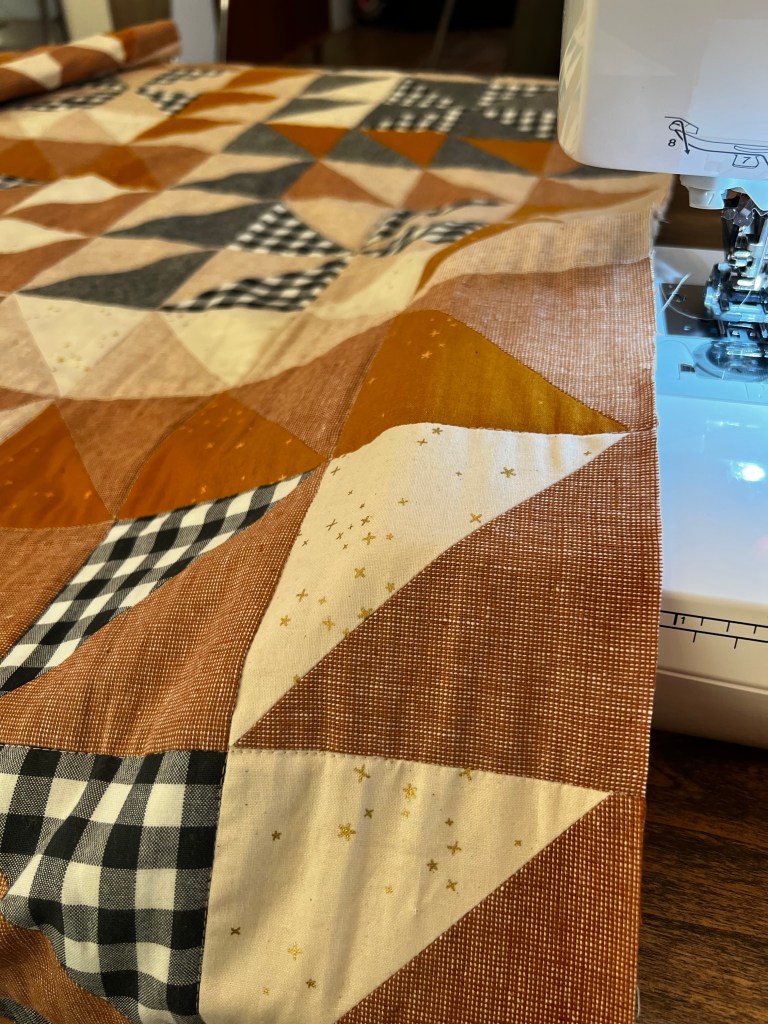 The day had come and it was time to sew them all up. I was soooooo nervous because I really didn’t want to screw this up. I laid them out 3 times on the floor in the dining room before sewing them altogether.