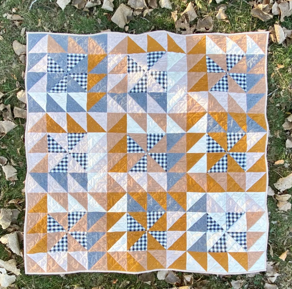 Look at it all sewn up! There are some imperfections, but I think for my first time it’s pretty good. The last few steps were the hardest. I didn’t know anything about batting, basting, and binding.