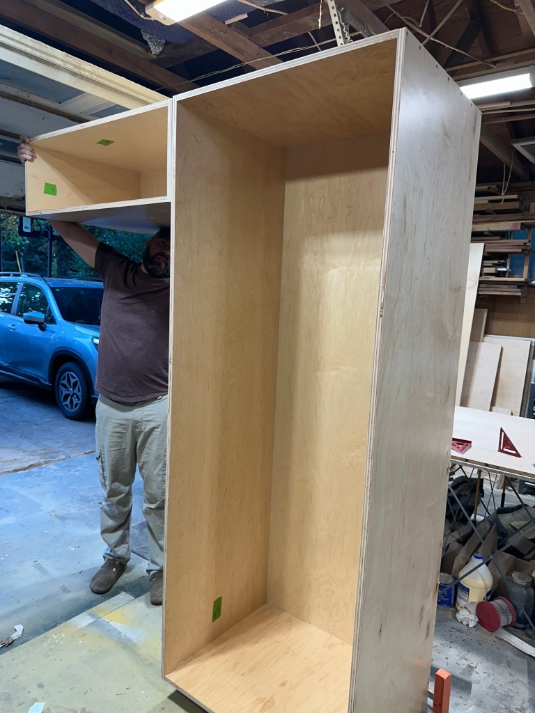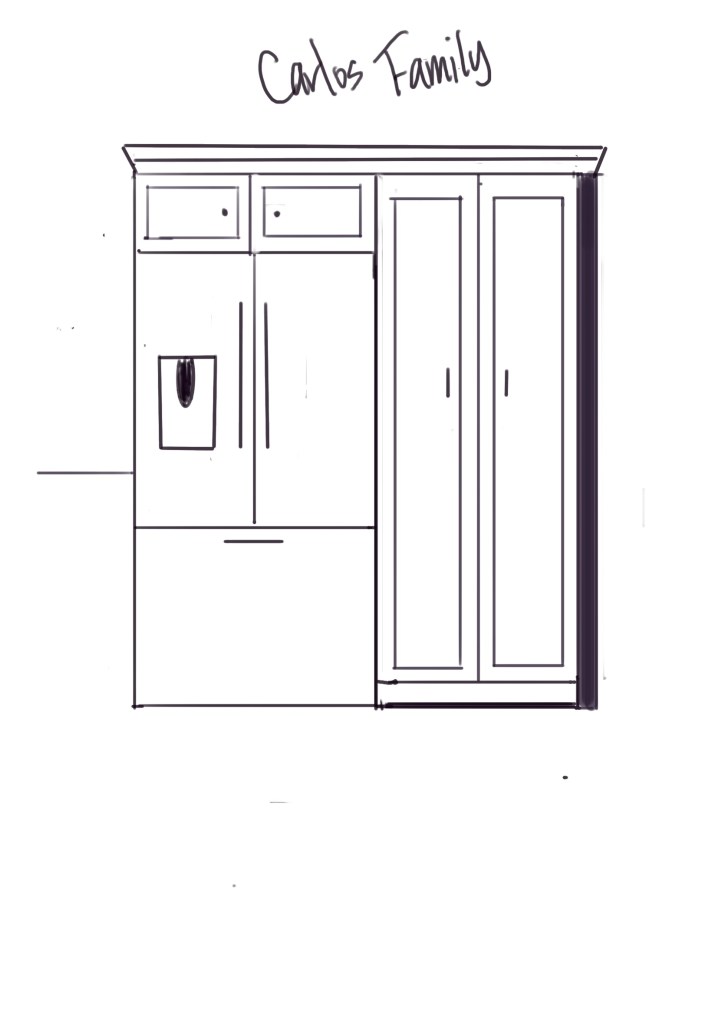 They decided a new big pantry was needed and we added some storage above the fridge. Here’s what I drew up.