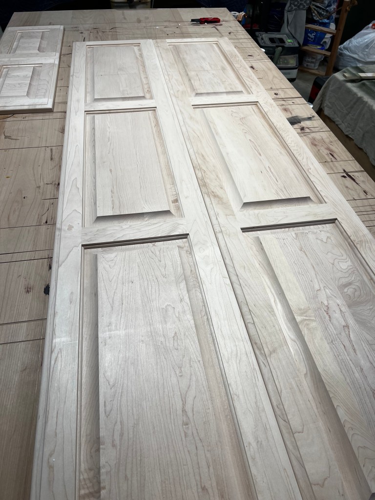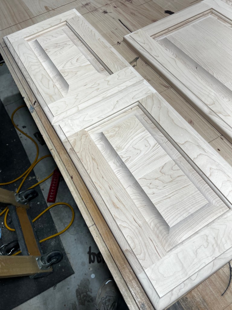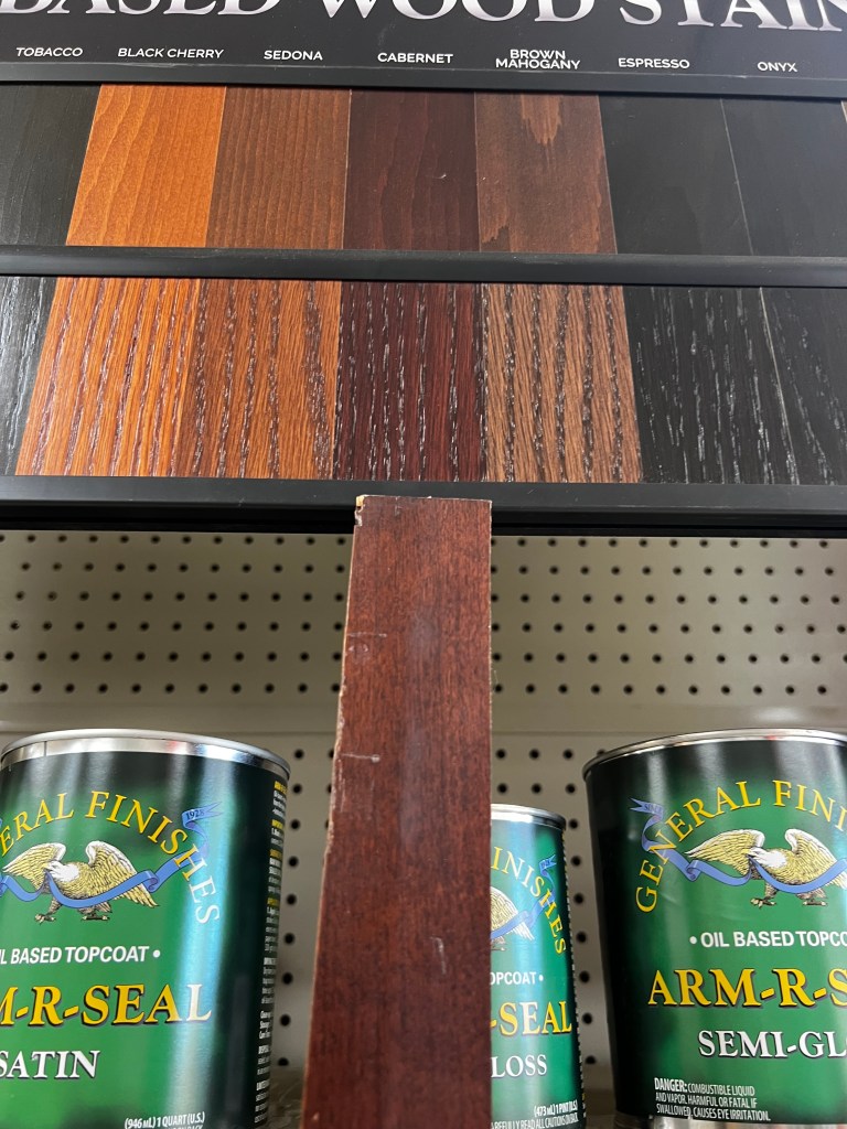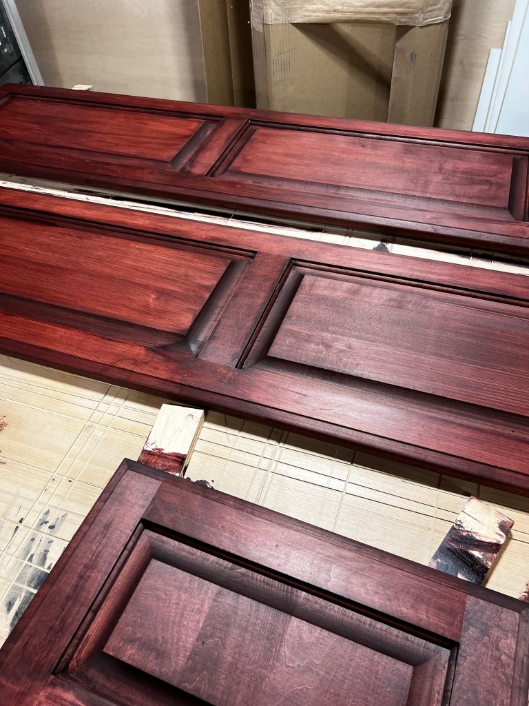 The only issue with this project was finding doors that were exactly the same as the ones they have. We looked everywhere and we couldn’t find them, so we ordered some that were pretty similar that were Maple hardwood. Next up was color matching. Which was nerve wracking, so I went to our local GW Hardware Store and decided to go with General Finishes. I’ve only used their Poly for my dining tables and it’s the BEST poly out there. This was the first time using the stain though and I heard good things.