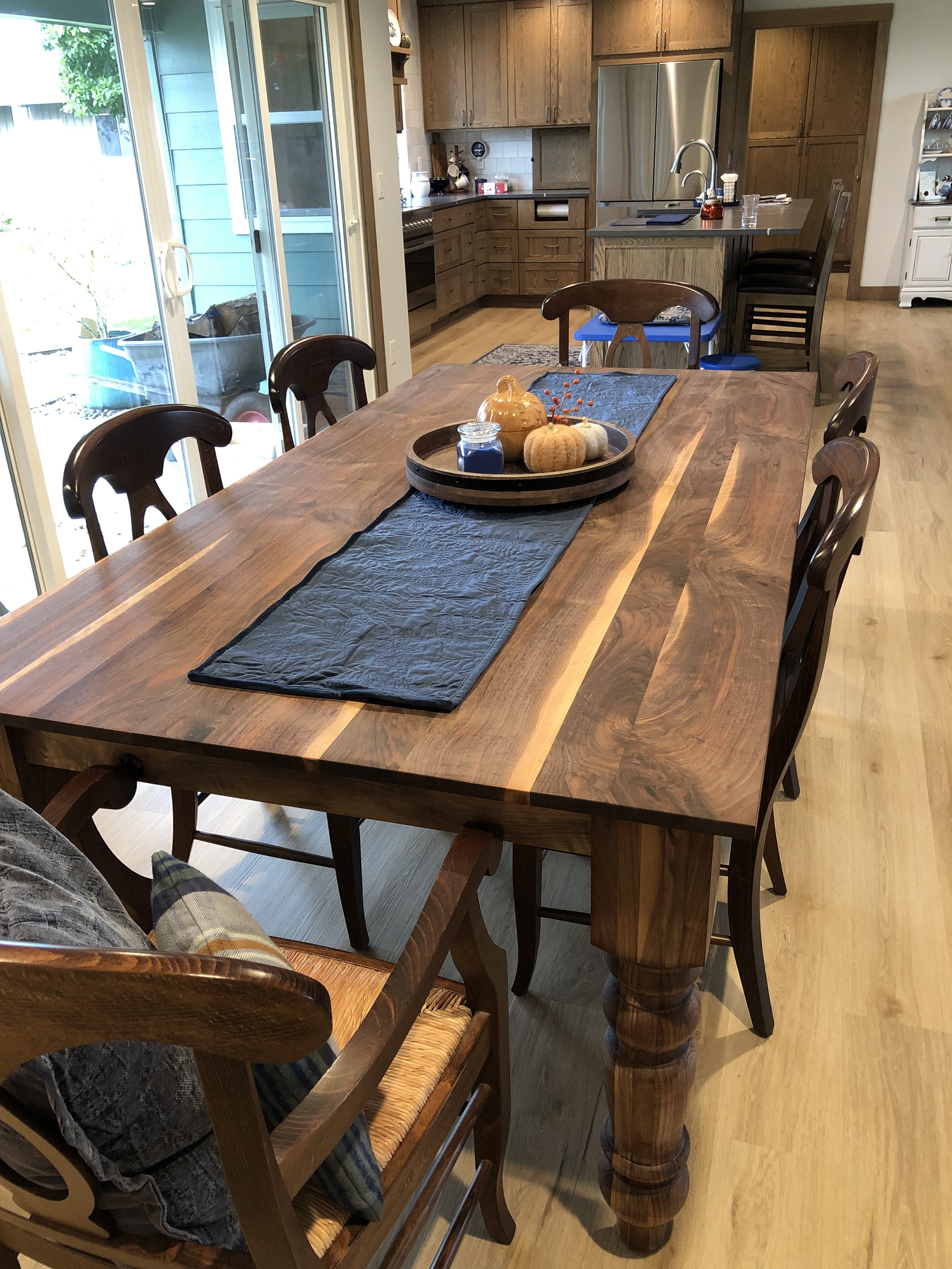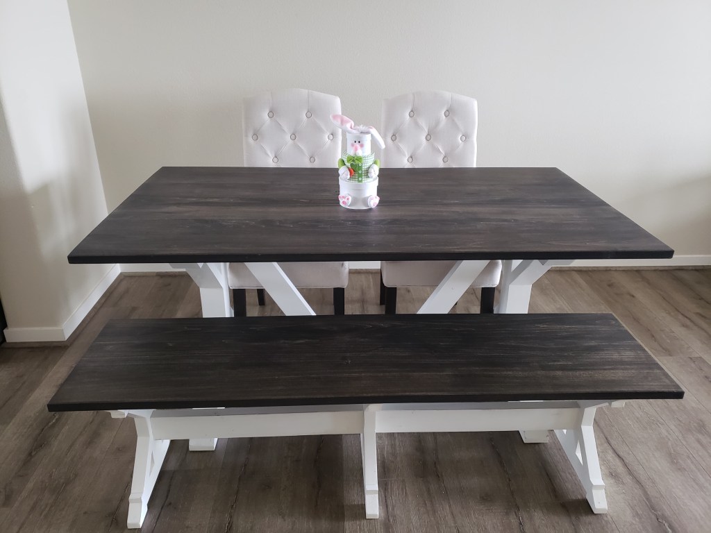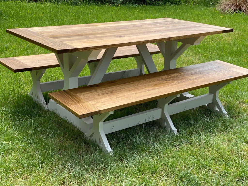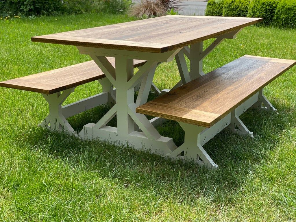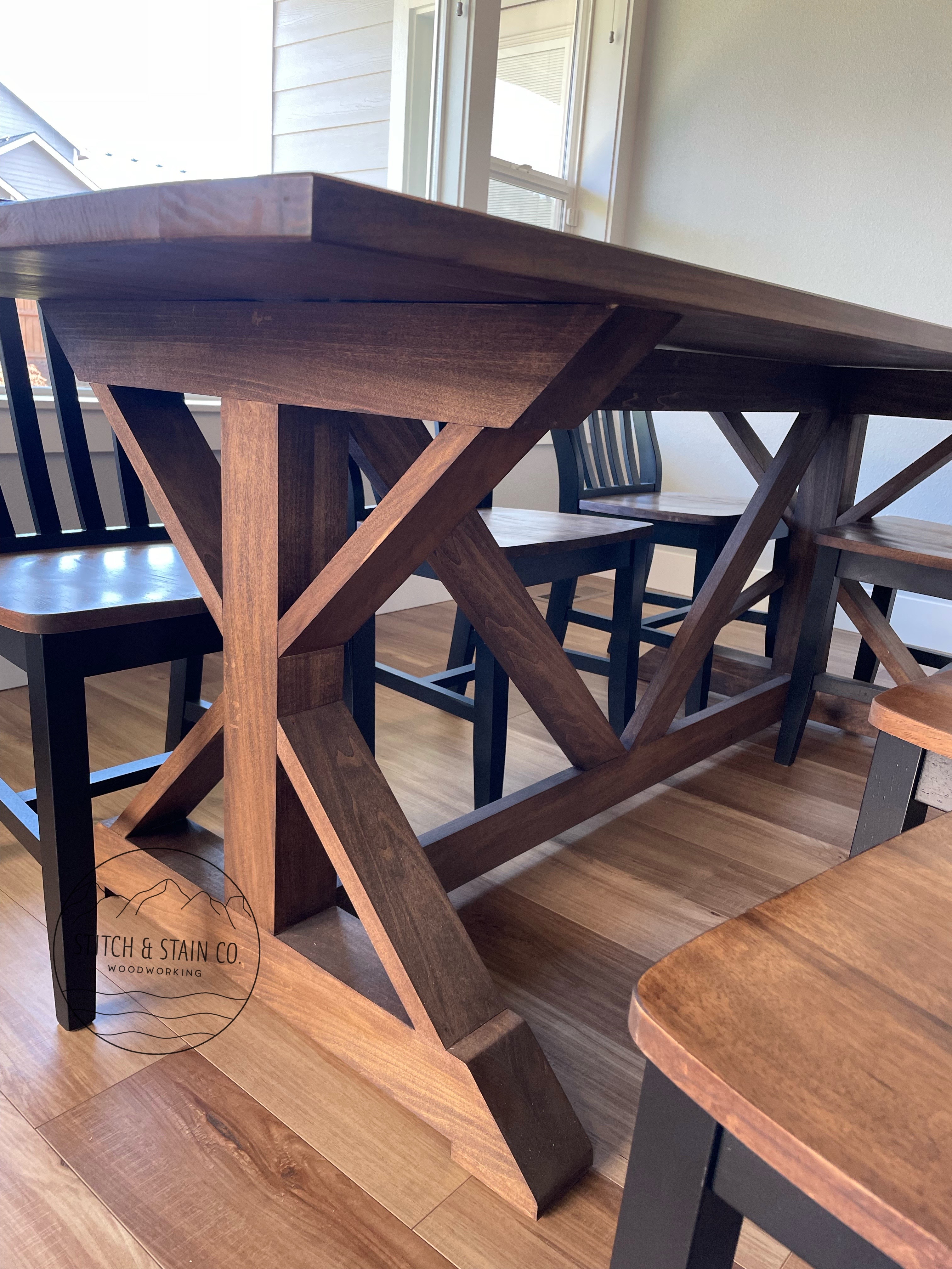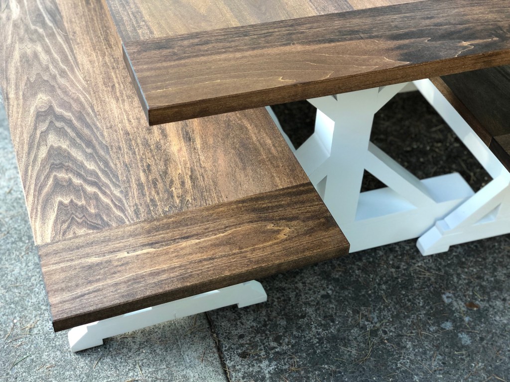 Fancy Farmhouse Table with BreadboardsBreadboard EndBreadboard EndsFancy Farmhouse w/Breadboards Fancy Farmhouse TableFancy Farmhouse BenchFancy Farmhouse Bench Truss Table with BreadboardsRound Pattern Dining Table Sliding Barn Door ConsoleSliding Double Door Console Color: Dark Walnut and Custom white paint.Pine Top Color: Dark Walnut Side View side viewDouble Sided Sliding Door Coffee Table Fancy Farmhouse Table @ 5FT 60” Sliding Door Console Fancy Farmhouse Dining Table w/ Breadboards Chevron Console